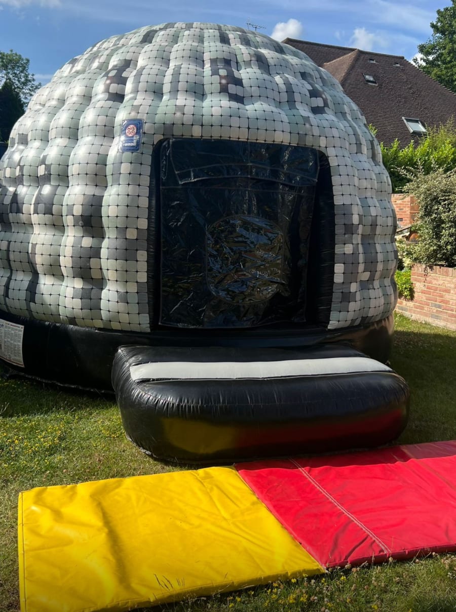 If you’re searching for Bouncy castle disco dome inflatable hire Minecraft inspired Disco dome in Ashtead, Epsom, Ewell, Dorking, Bookham, Fetcham, Leatherhead, Epsom Downs, Langley Vale, Cobham, Oxshott, look no further! We pride ourselves on prompt, professional service and deliver our disco dome directly to your location. From backyard birthdays to community events, our disco dome is the highlight every party needs. 🥳